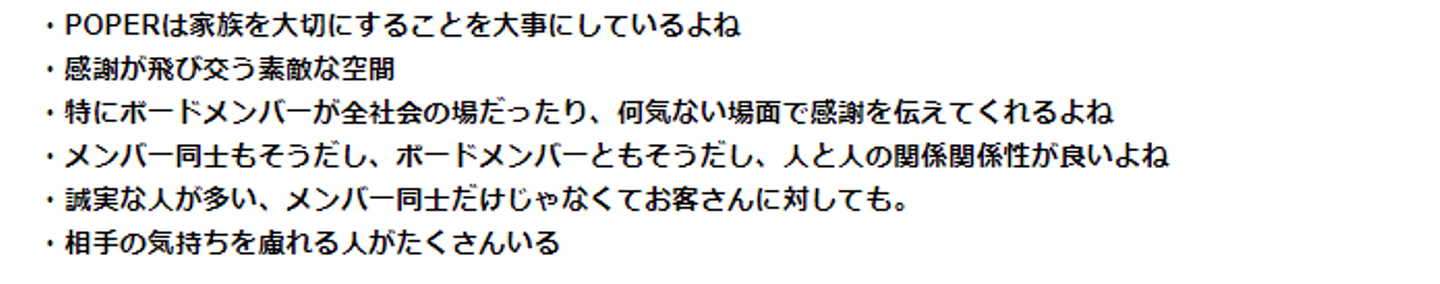 グループワークではPOPERらしさについて運営メンバーからこんなご意見がありました。この話し合いをしている空間がとにかく温かくて最高でした😊