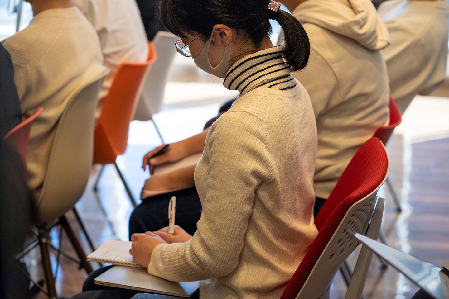 先生が力強く訴えるたび、皆のメモの手が動きます。