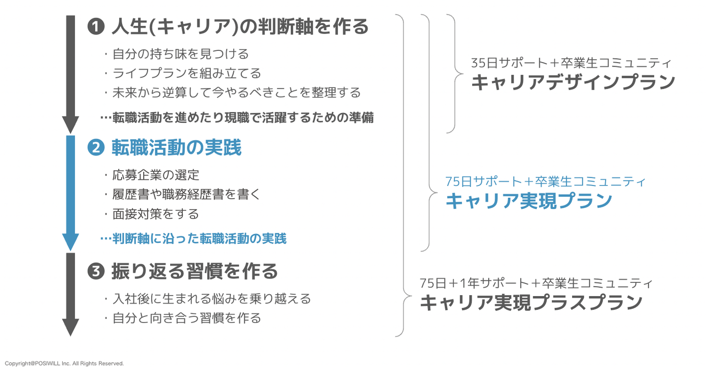 3つのプランのなかでも「キャリア実現プラン」は、転職活動までサポートするプラン。