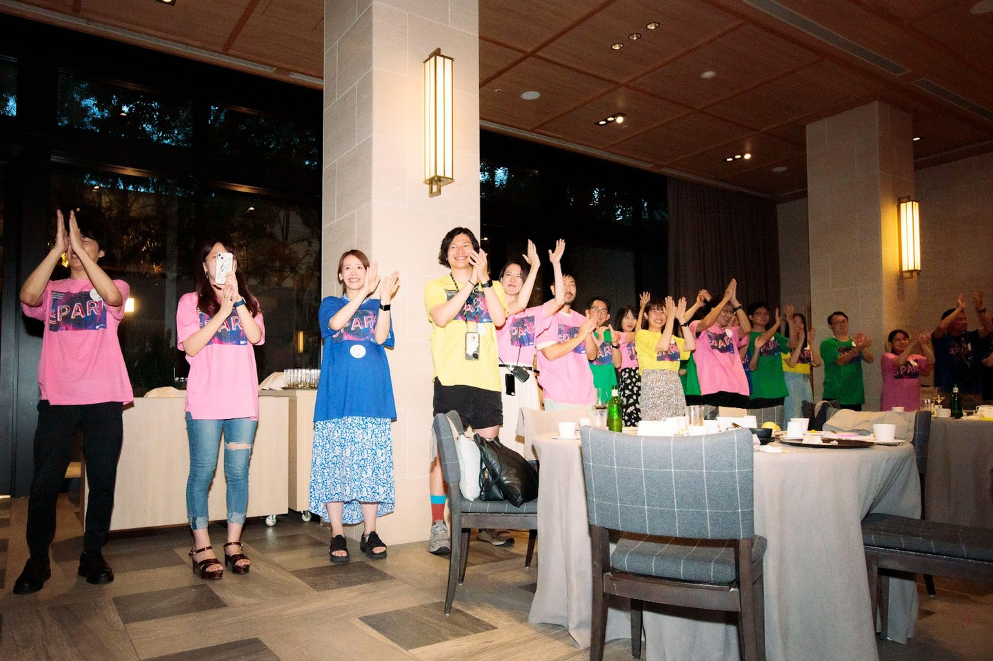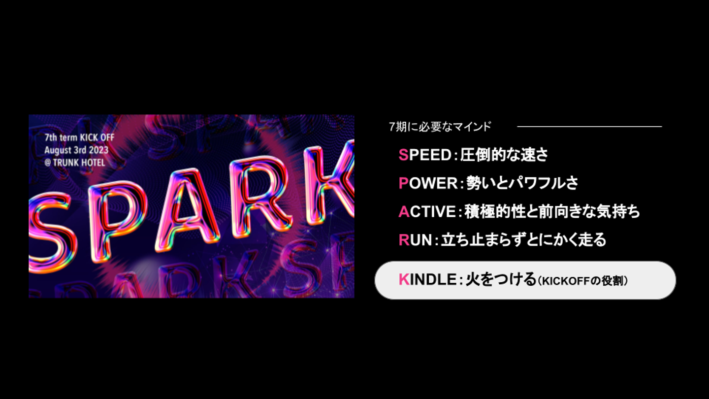 次のフェーズに向けての準備ラストイヤーの幕開けである今期は、常識をぶち壊し、カオスを楽しみながら走り切るパワーが不可欠。「SPARK」という本会のテーマを受け、音楽フェスのような熱狂と一体感を味わうため、みんなで色違いのTシャツを着用!