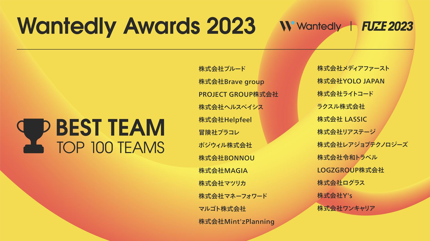 ポジウィル株式会社はこの度、ウォンテッドリー株式会社が発表した「Wantedly Best Teams 2023」において、39,000社を超えるWantedly登録企業の中からBEST100社に選出されました!