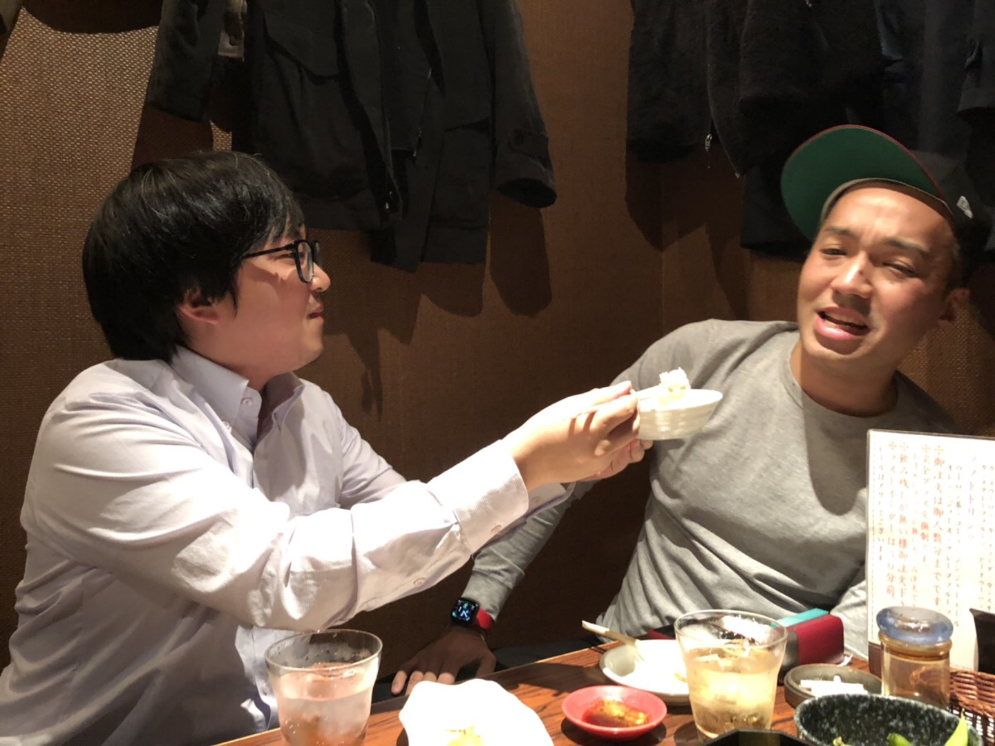 本宮さんが足立社長にあーんしようとしていました(笑)