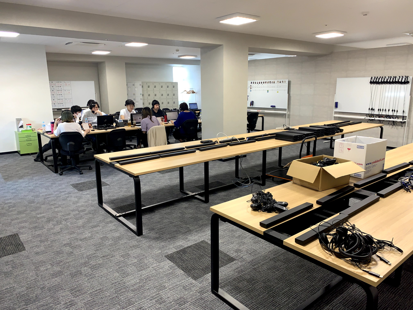 事務所広すぎてガラガラです。隅っこに固まって仕事してます、、