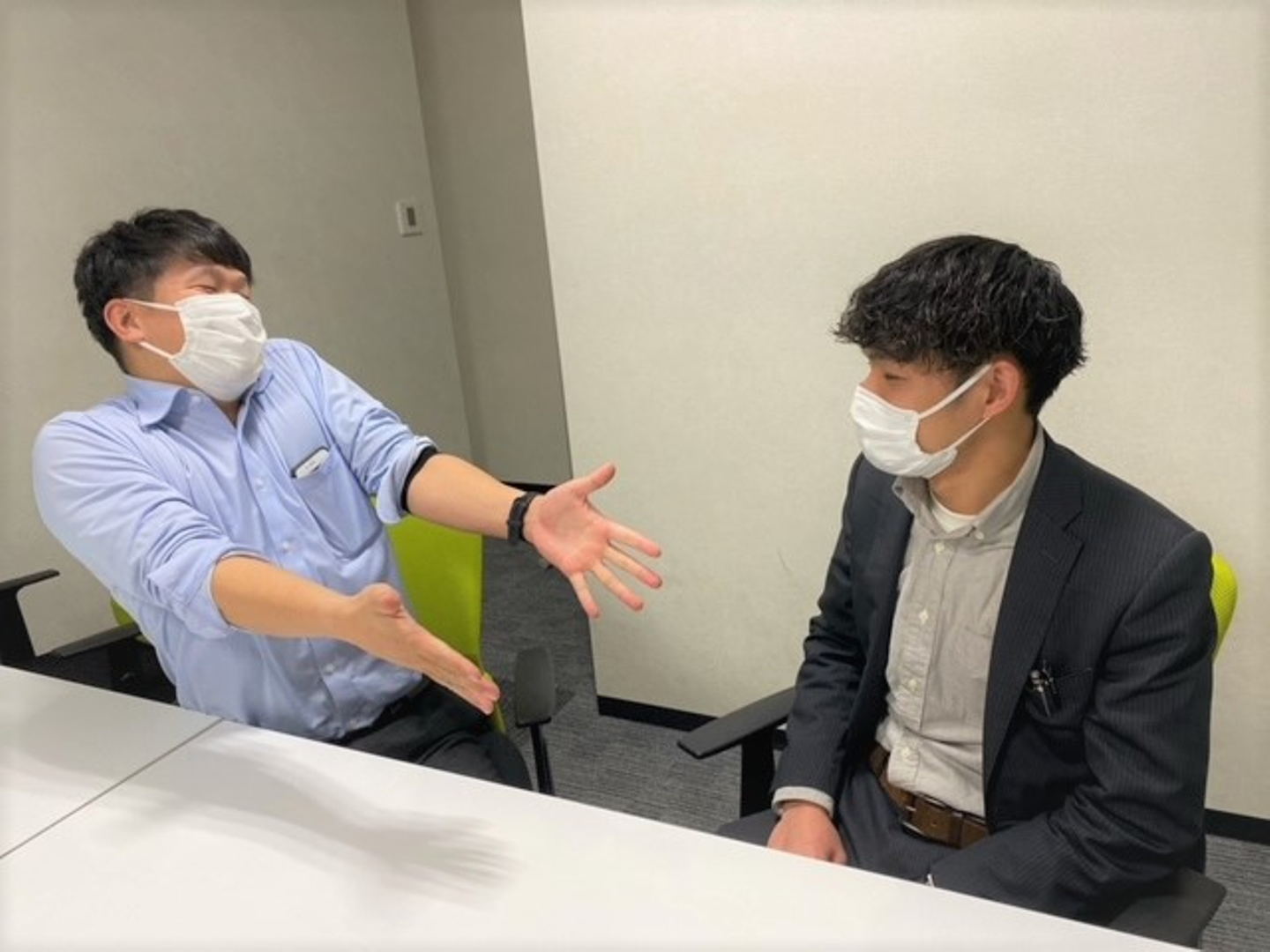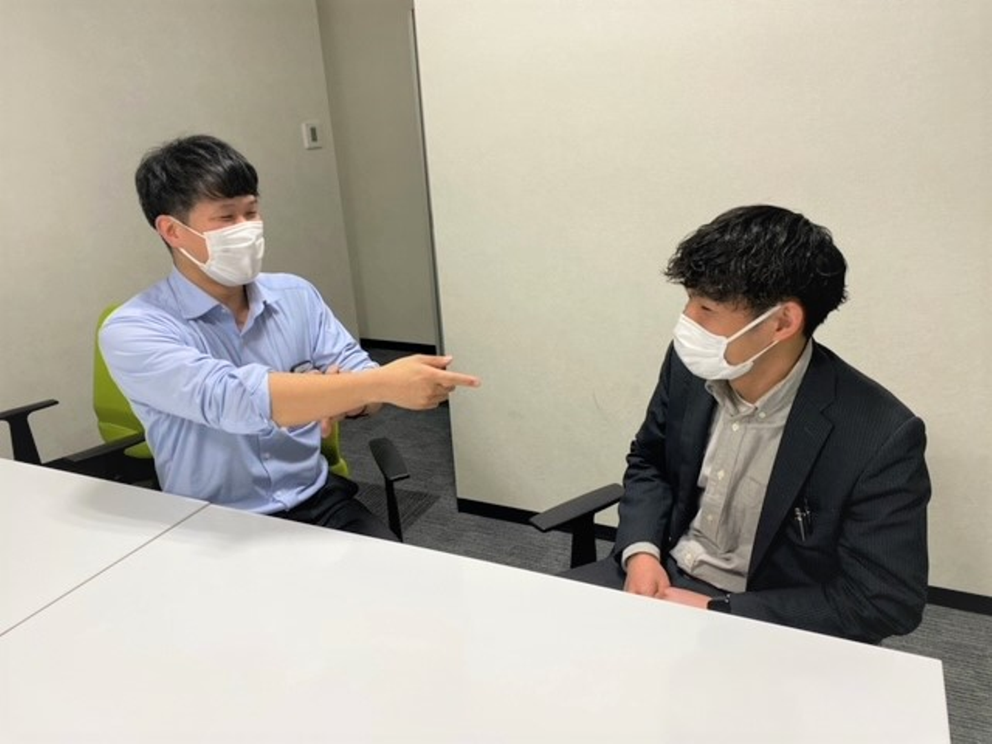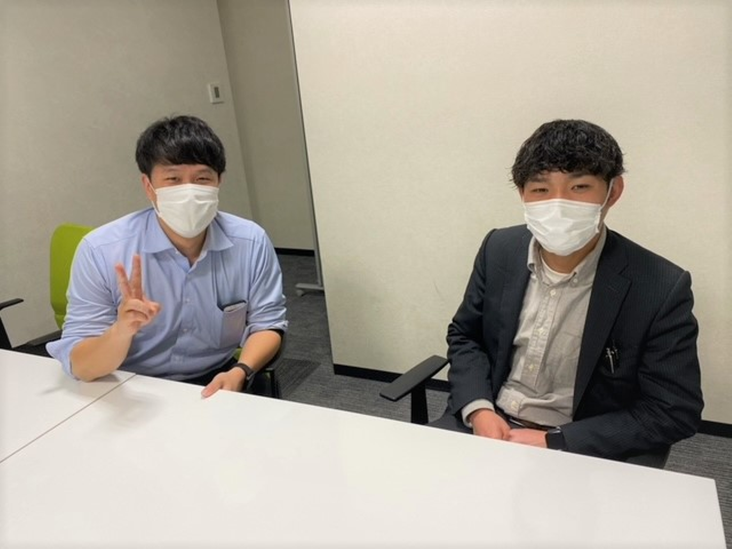 第1弾は、法人部署入社2年の平山さん(写真:左)と、去年新卒で入社した大石君(写真:右)です。