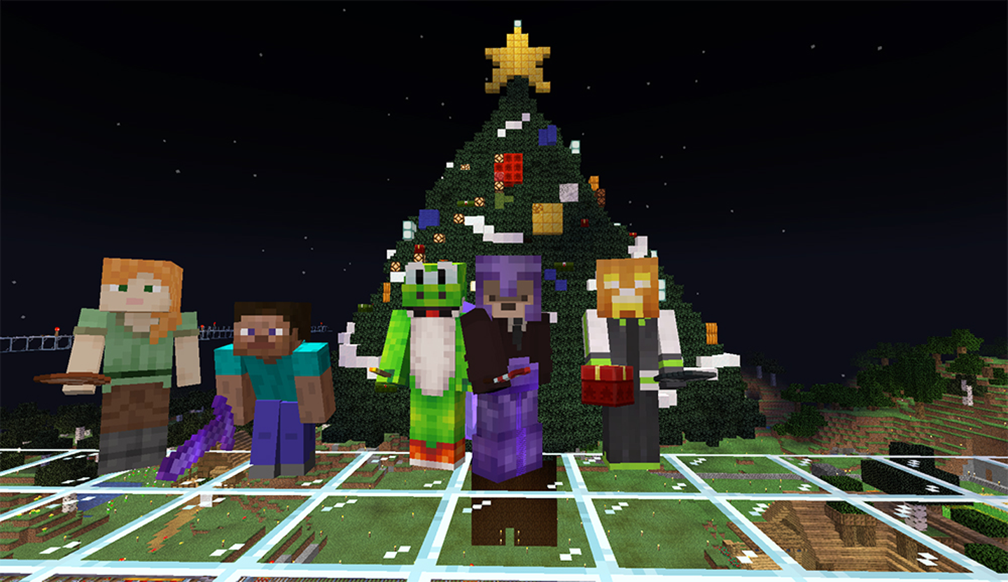 ▲マインクラフト同好会の様子 / クリスマスツリーの前で記念撮影