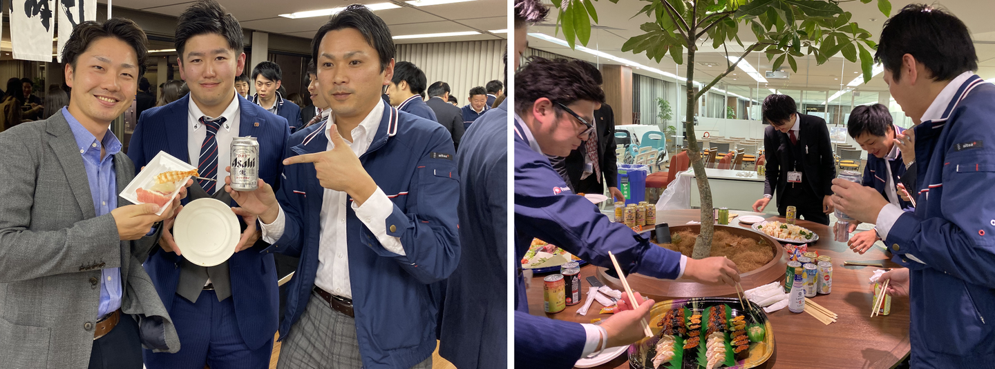 ▽(右)社長である柴田さんと若手社員も一緒に、歓談を楽しみます^^