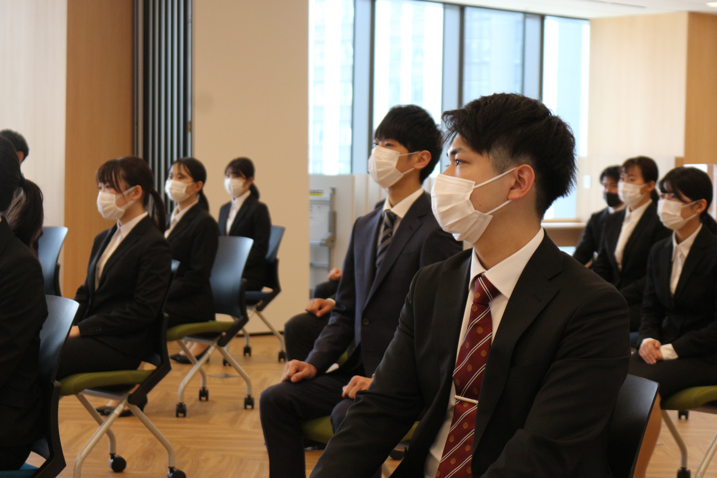昨年秋に実施した内定式以来、約半年ぶりの全員集合でしたが、それを感じさせない和やかな雰囲気の新入社員たち。