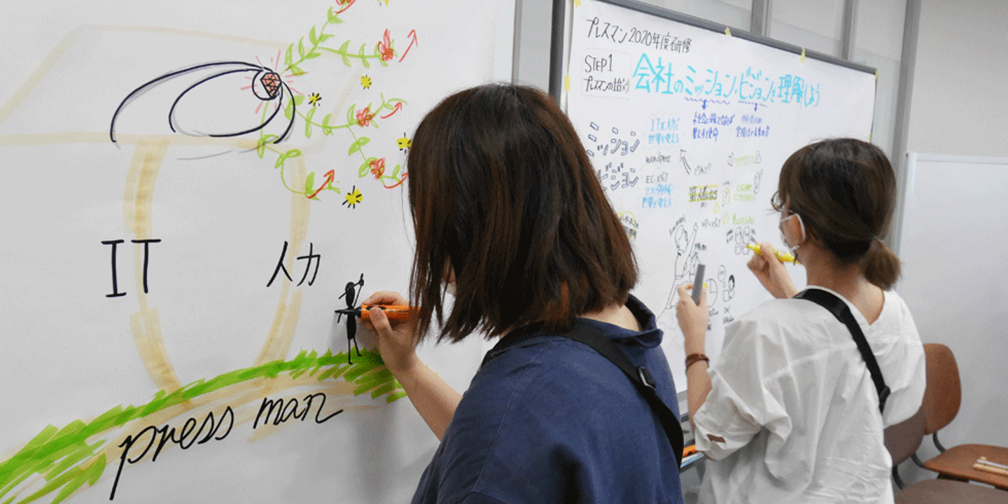 今回は第1回目「ミッション・ビジョンの理解」をテーマとした研修をレポート!全ての研修を通し、新人エンジニアである加納君と本間さんが、よりプレスマンを理解できる内容になっているので、プレスマンを知らない人もぜひ最後まで読んでもらえると嬉しいです。