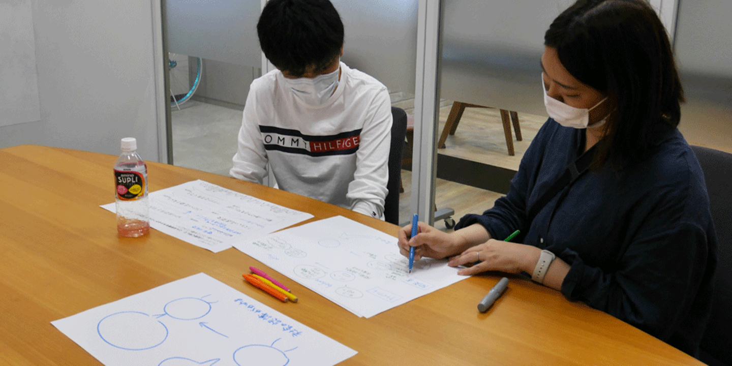 今回は、詳しい業務のことを知らないグラグリッド社の二人に対して、分かりやすい言葉で説明するのに苦戦しながらも、説明し絵になることで、自分の仕事の理解が深まっていった印象でした。