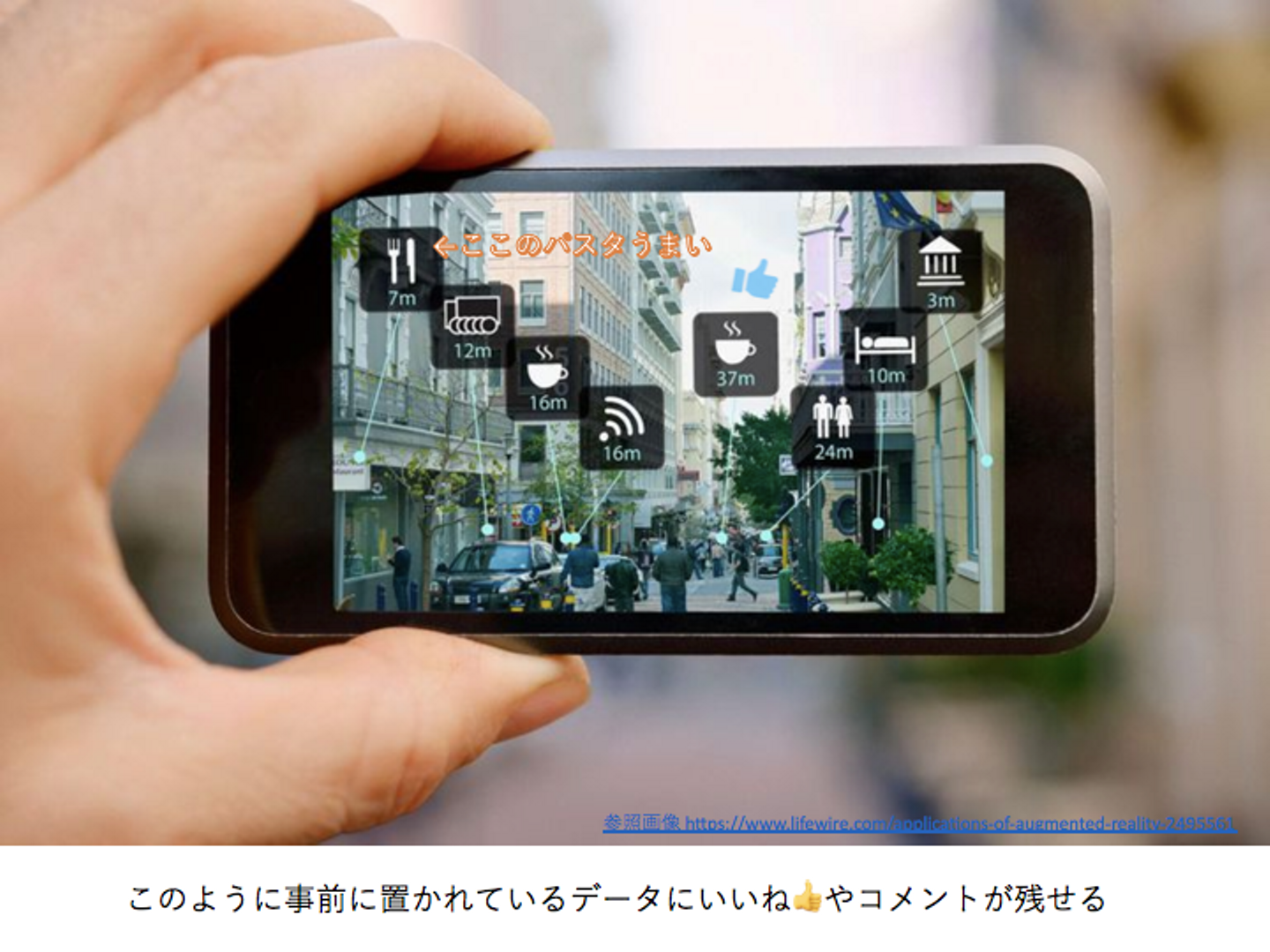 具体例としてはセカイカメラという、かつて一斉を風靡したアプリを思い返していただくとわかりやすいです。