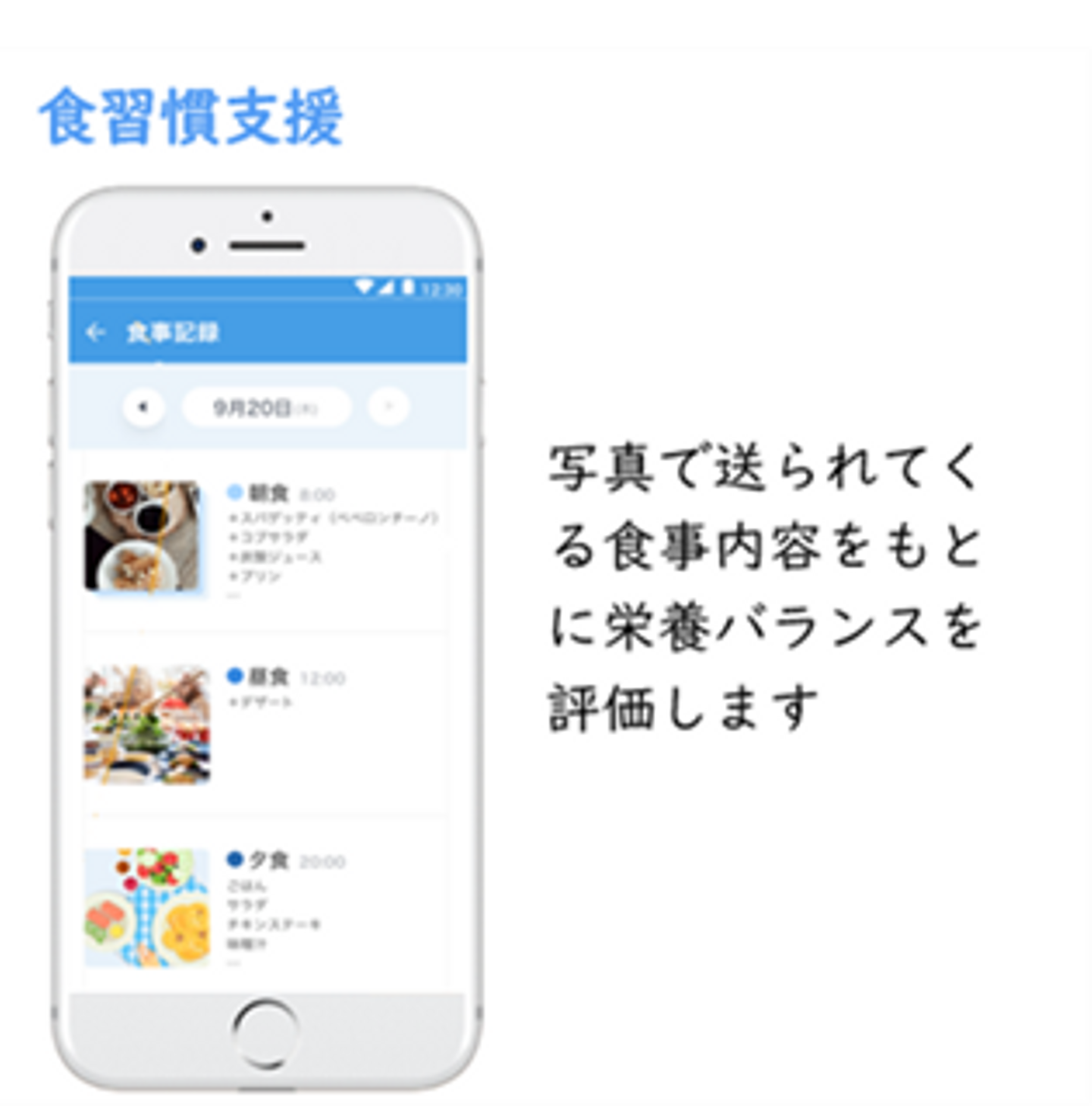 写真で送っていただく食事内容をもとに栄養バランスの評価を行い、食習慣の改善に向けたサポートを行っています。例えば、高血圧症をお持ちの方に対し、減塩に向けて塩分が多く含まれている食品や調味料の使用方法のアドバイスやカリウム摂取についてのアドバイスなどの食事方法のアドバイスをしています。