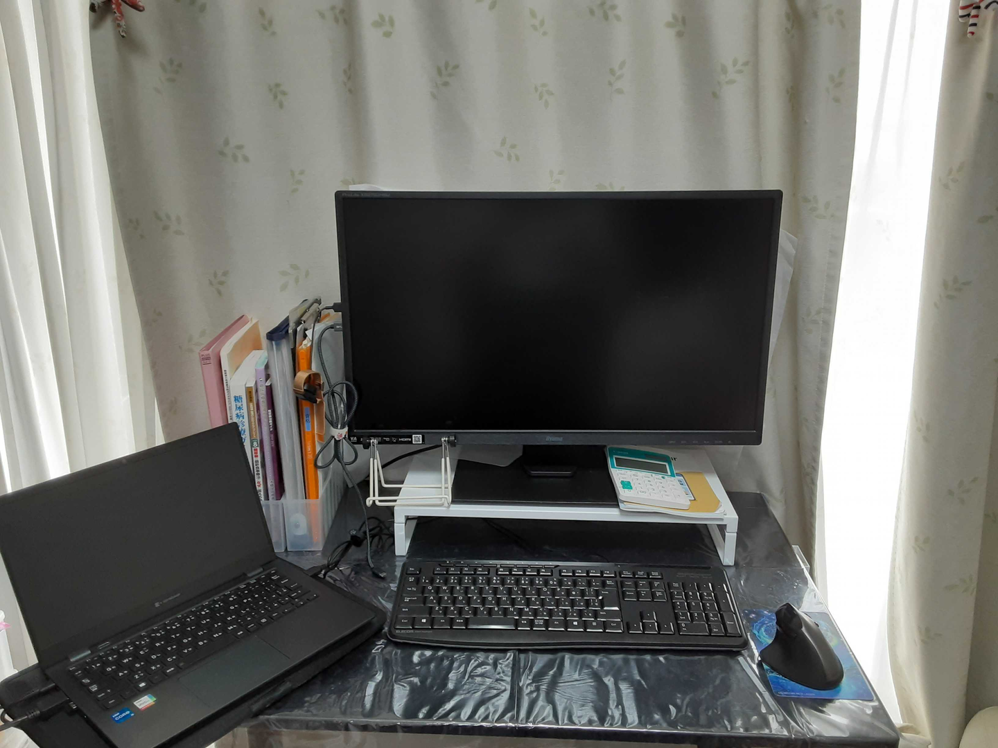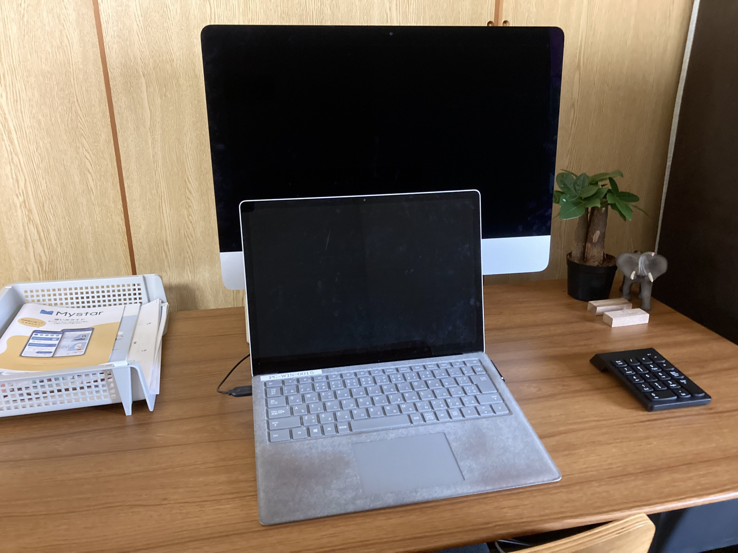 テンキー付きのキーボードとかっこいいマウスを使用しています。大きめのモニターが使いやすい!ということで、作業はほとんどモニターの方で行っています。