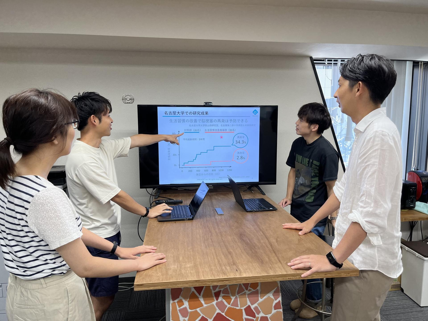 加えて、私の妻が心臓外科の看護師として働いており、彼女の口から患者の苦しむ姿や残された家族の話を日々聞く中で、そういった事態に至る前に何か出来ないかと考えていました。萩原との出会いと、私の個人的な背景が重なり、株式会社PREVENTへの入社を決意しました。