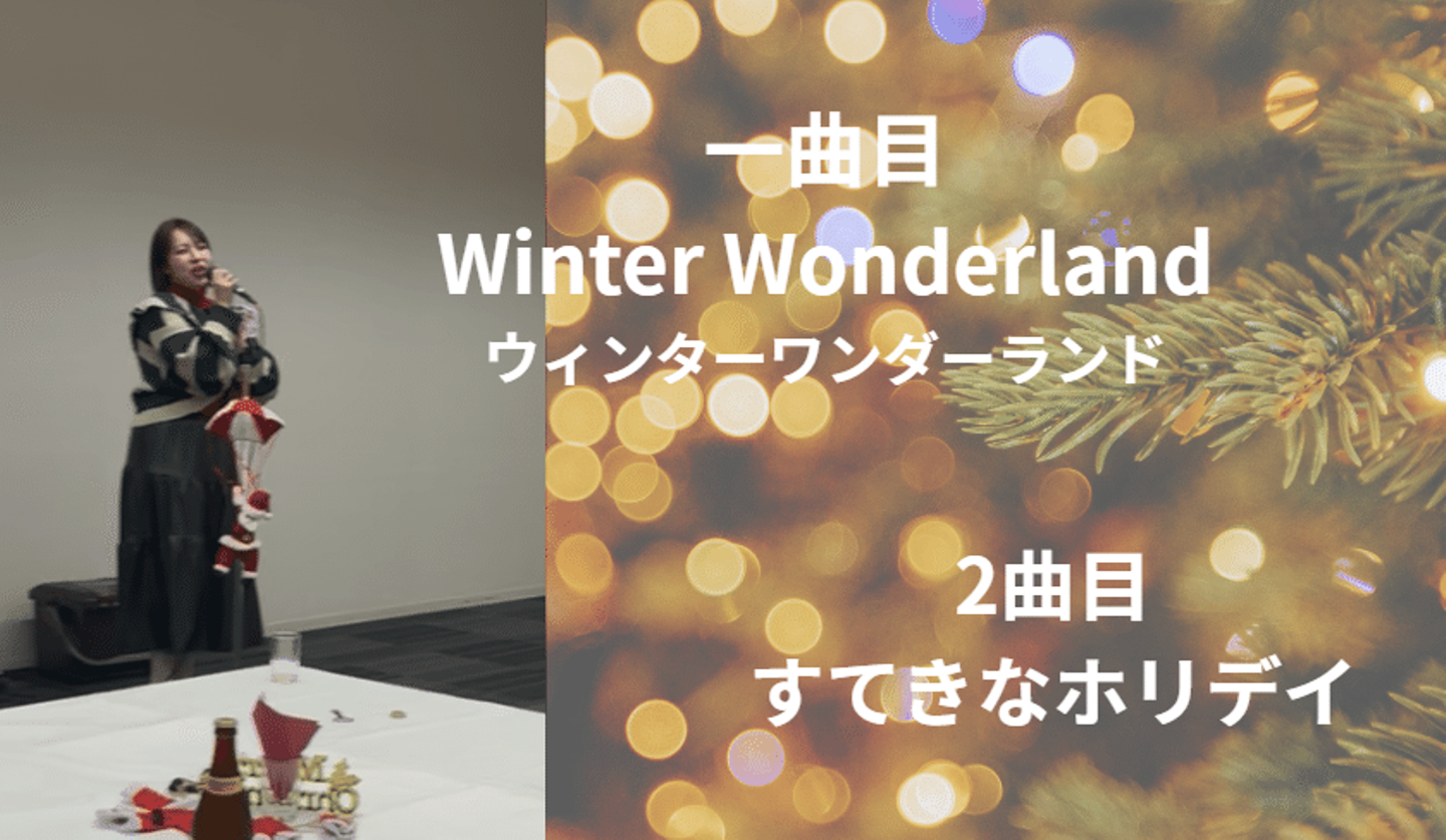 その後、マーケティングチームのメンバーが、クリスマスソングを2曲披露してくれました。透き通る高音の美声に感動!