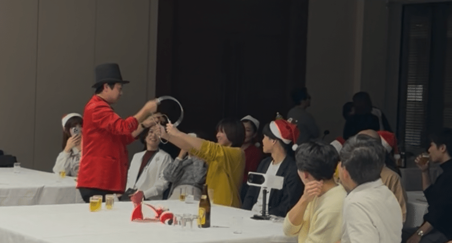 社員がしかけを見破ろうとして真剣にのぞき込むので、何度も「しかけはなんかあるんだから、疑わないで!これだから大人は!」とマジシャンの方に絶叫させてしまいました。