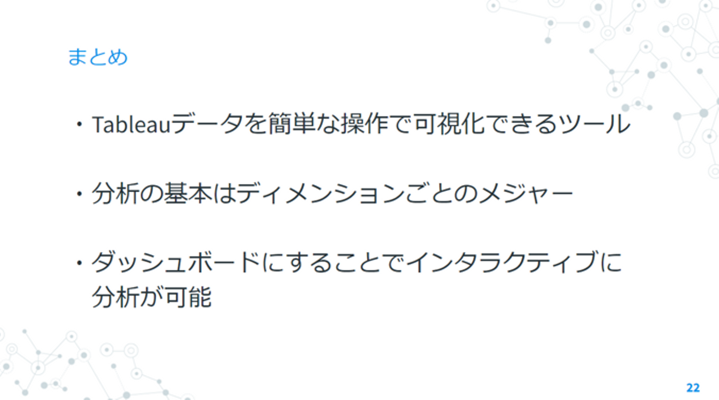 ▲Tableau勉強会のスライド一部抜粋(同期の方も多数出席して、学び合っていました)