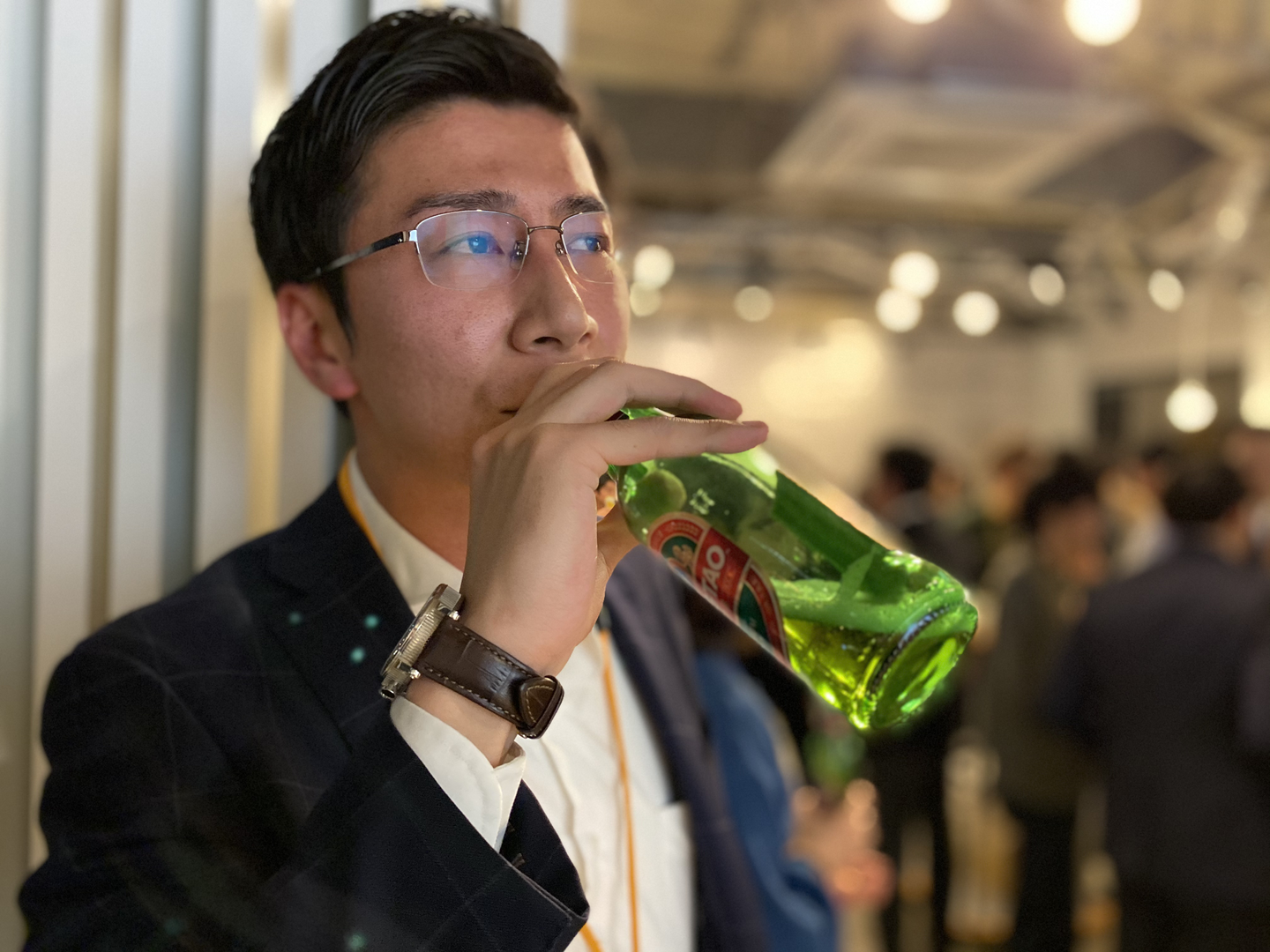 中国語で乾杯は「干杯(gān bēi)」ですが、なぜか「青島~!(Chintao)」で乾杯しました(笑)この後顔が真っ赤になる下澤さんー今回も新宿ワープにお世話になりました!ー
