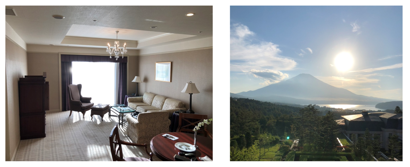 左:客室内部の様子 右:窓から見える富士山🗻利用した社員に話を聞いてみると、お部屋代がその設備に対してリーズナブルなので、食事を豪華にしたりすることもでき、ゆっくりとくつろぐことができたと話していました😊日帰りでも行ける距離にあることもリピートの要因のようです。ちなみに利用する際は担当社員にLINEすればすぐ予約確認ができるので、複数回利用している社員は回を重ねるごとにやり取りがスムーズになっていきます(笑)