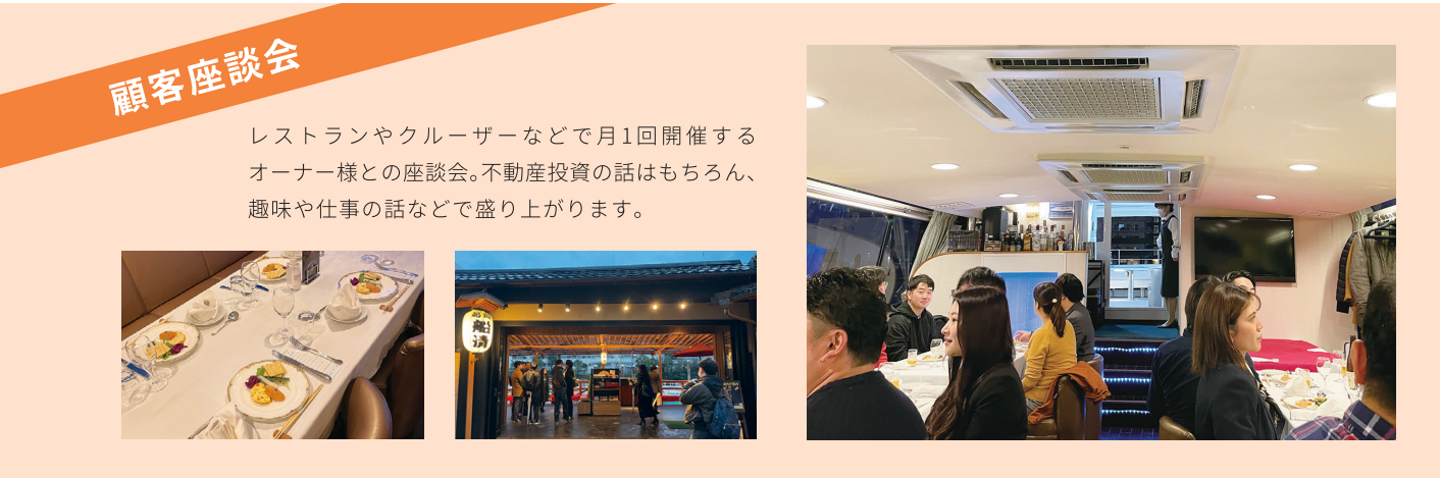 当社営業部では、日頃お世話になっているオーナー様との関係をより深めるために、定期的にオーナー様懇親会を開催しております。
