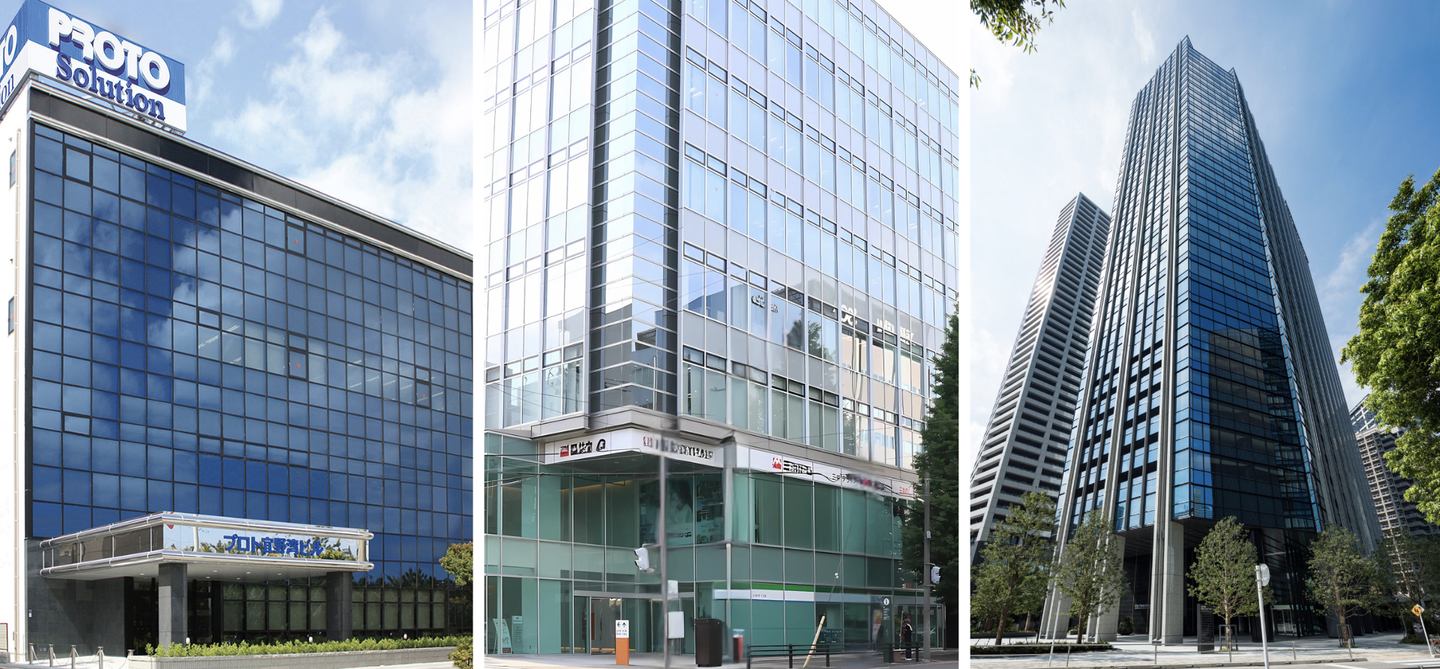(左:沖縄本社、中央:仙台本社、右:東京支社)