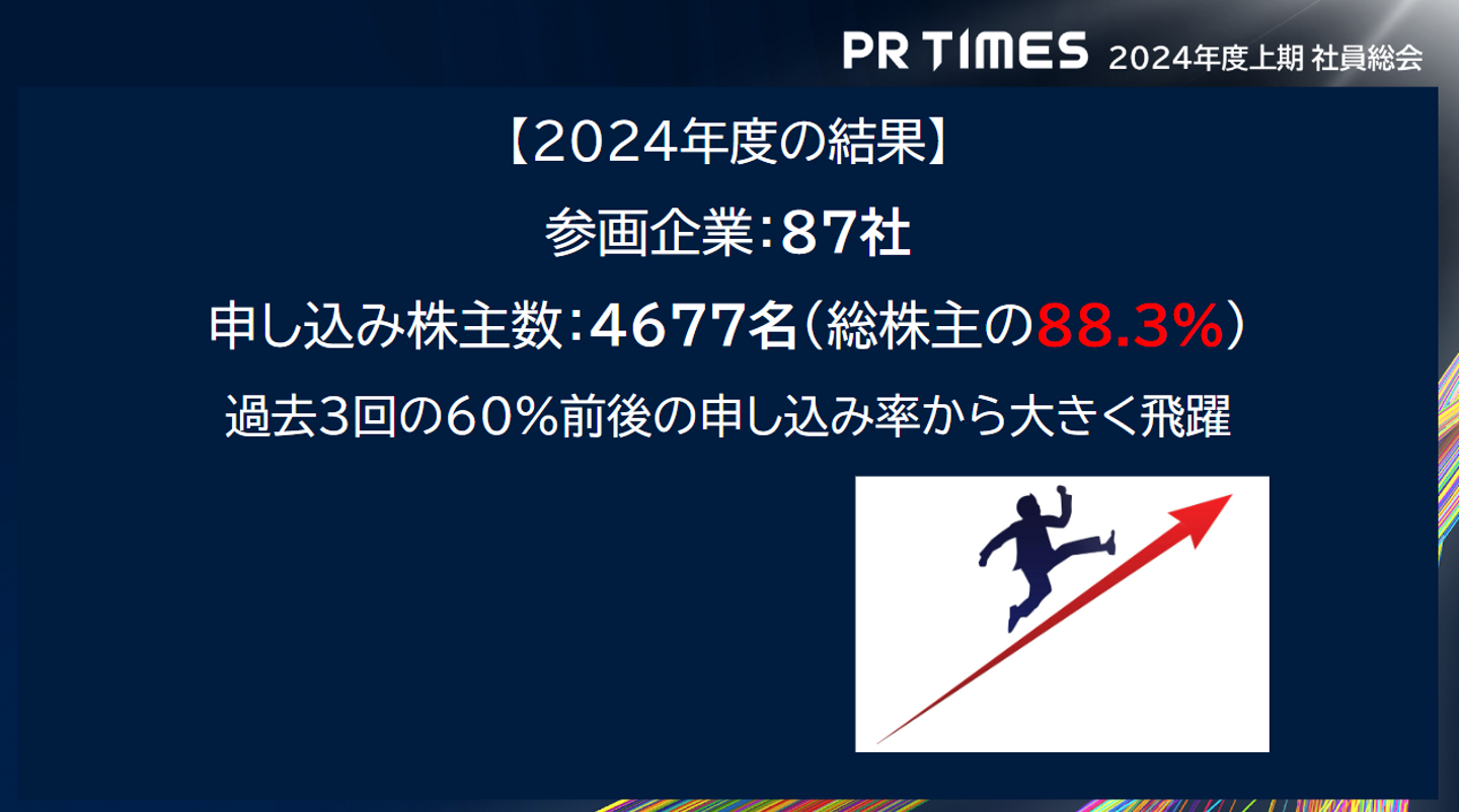 山田:思い返すと、PR TIMESのバリュー「Act now, Think big」があったからこそ、今回の取り組みを完遂できたのかなと思います。これは「未経験にも臆さず、まずやる」といった意味なのですが、本プロジェクトは誰かが「やろう」と言い出してからの動きがスピーディーだったなと。昨年は申込がなかった株主様に対して、開始前にお知らせをお送りしたのも、「やろう」という話になってすぐに取り組んだことの1つでした。お知らせを見て「今年は申し込んでみよう」と思ってくださった株主様もいたと思います。こうした「まず、やる」が積み重なったことが、大きな成果につながったのかもしれません。