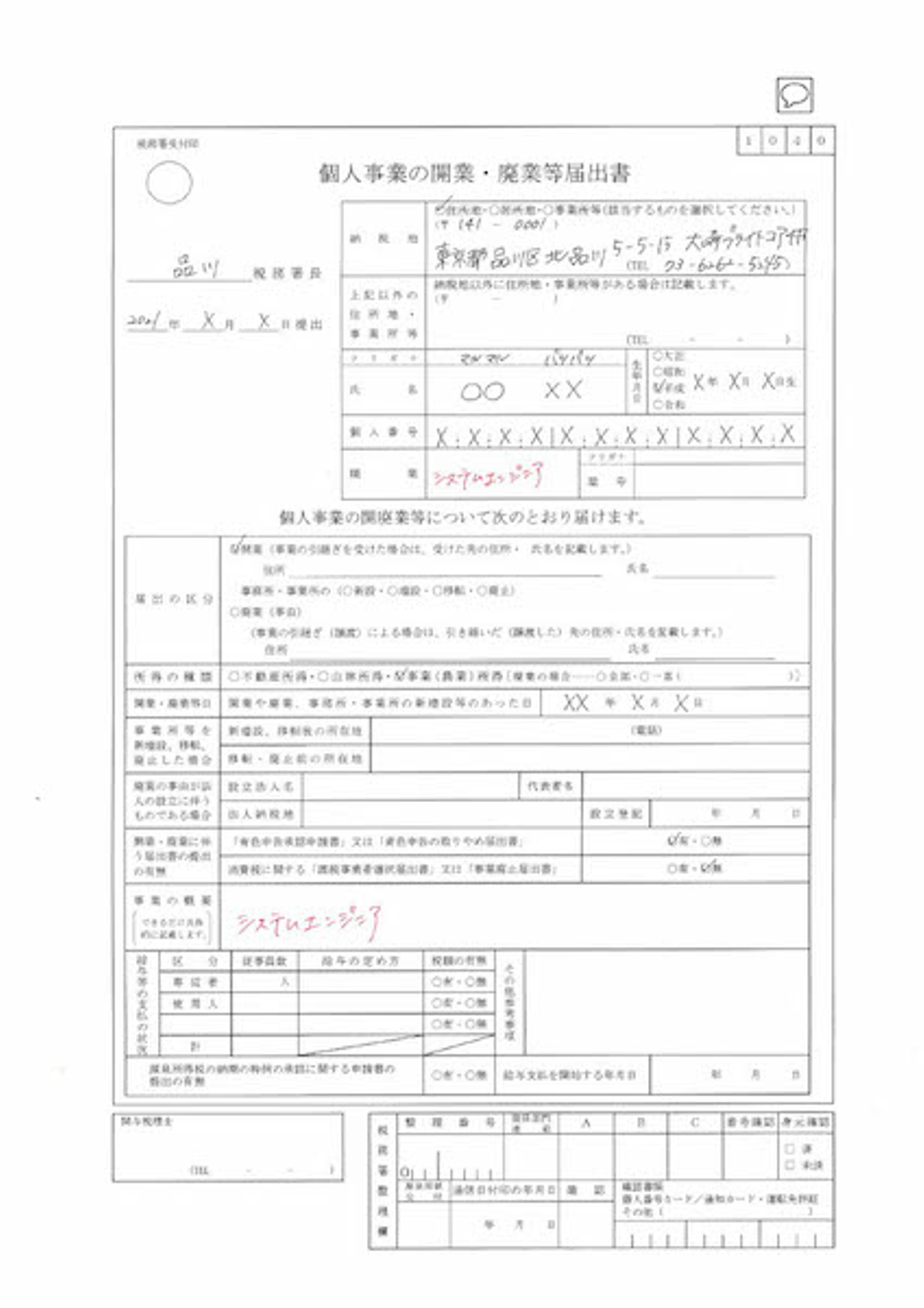 あとはサンプルに倣って記入すれば、開業届の完成です。
