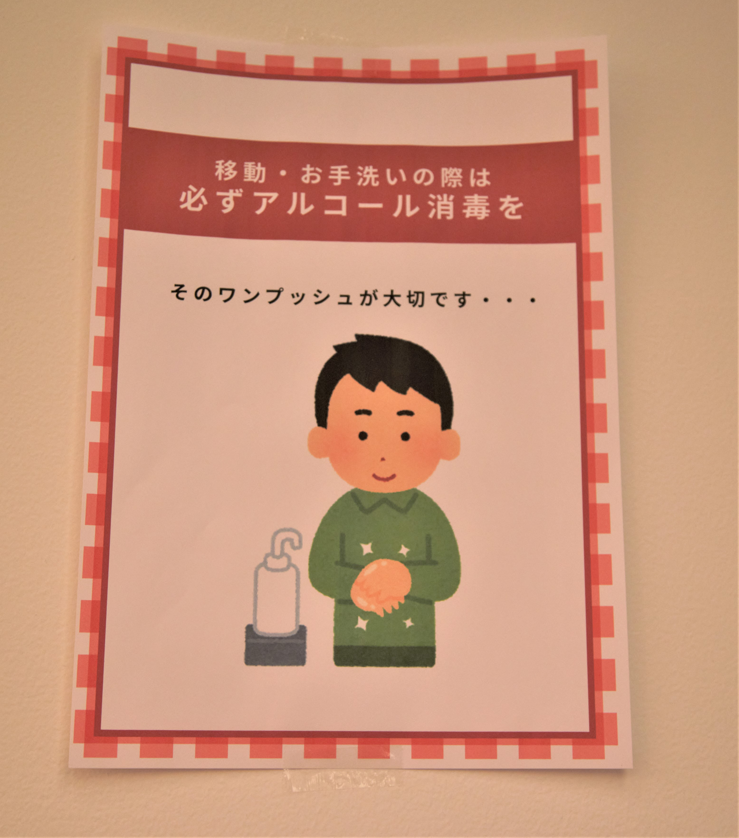 (各テーブルには、1つずつアルコールスプレーと除菌シートを置き、使用しました!)