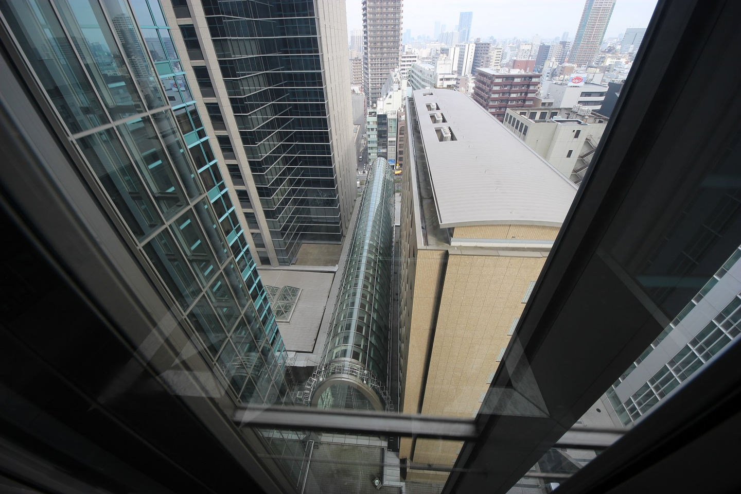 シャトルエレベーター、慣れないと結構怖いです…高所恐怖症の方は、エレベーターの奥の方を