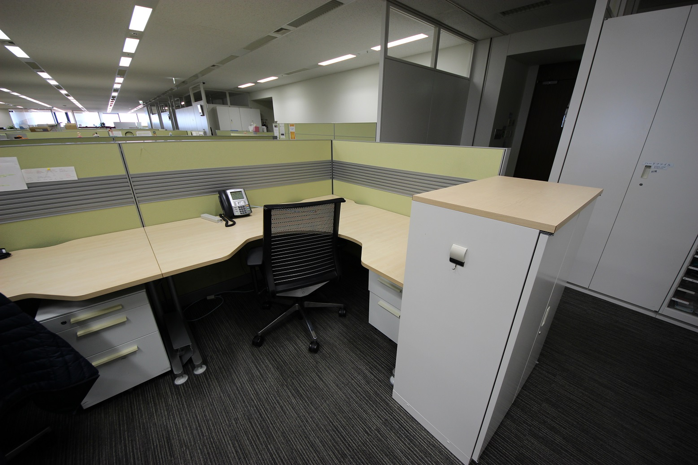 こんな感じです♪ 机の下のキャビネット、他各キャビネットがあり、収納万全です♪