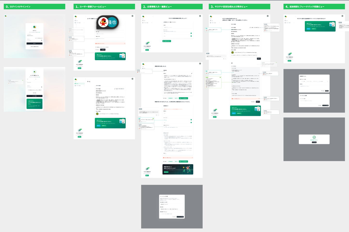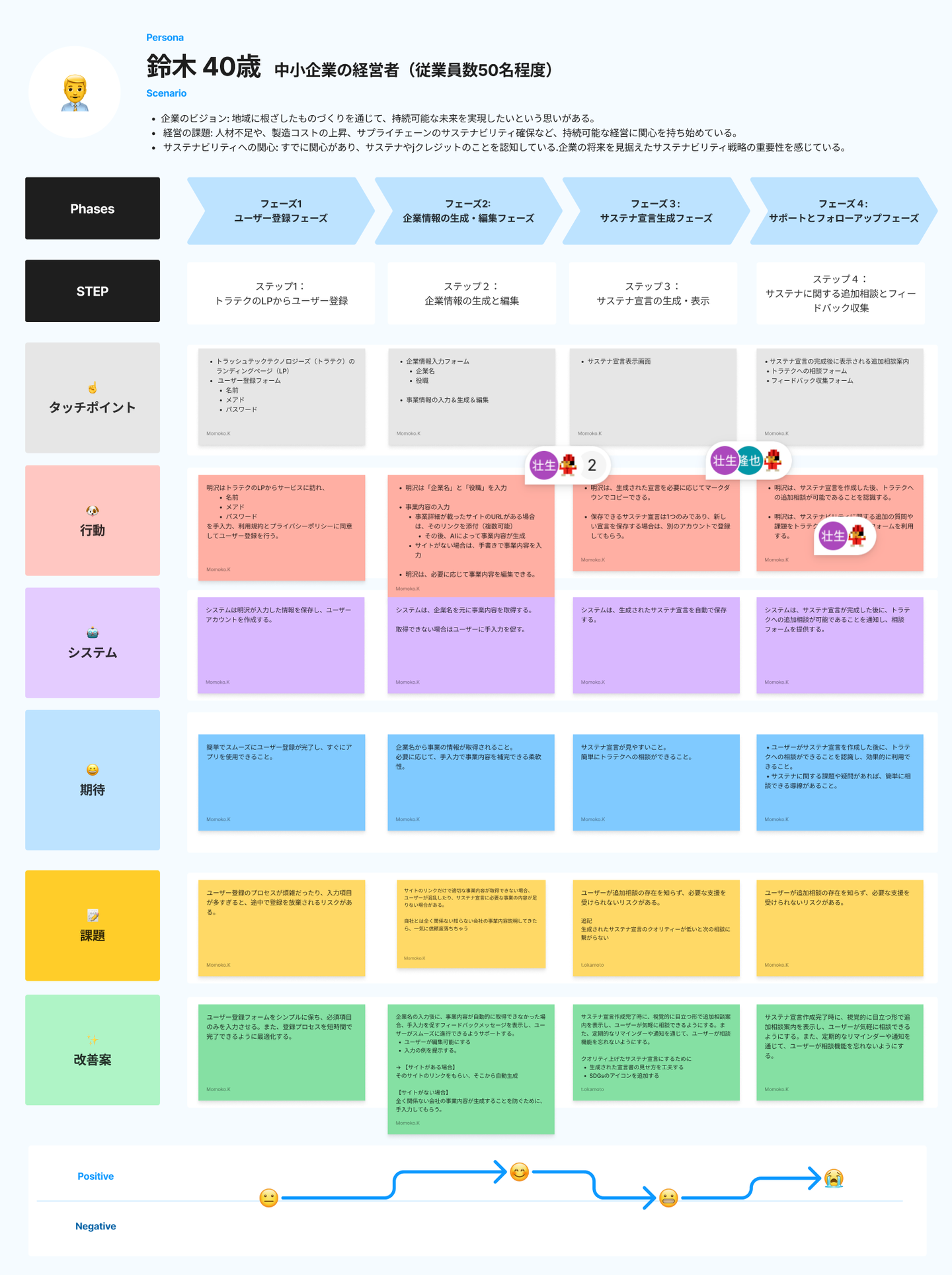 整理したユースケースをもとに、ユーザーの具体的な行動フローを可視化したユーザージャーニーを作成しました。