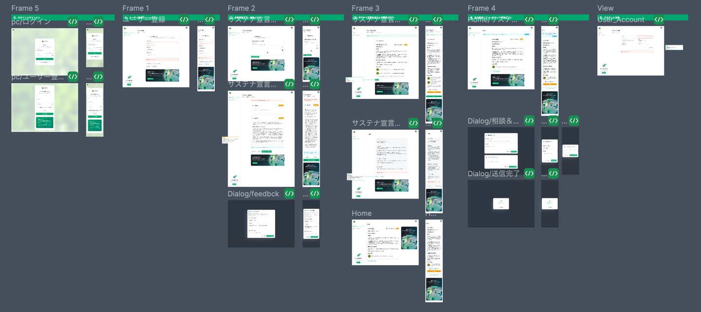 ユーザージャーニーやオブジェクト分析をした内容をもとに、具体的な画面設計に落とし込んだワイヤーフレームを作成しました。