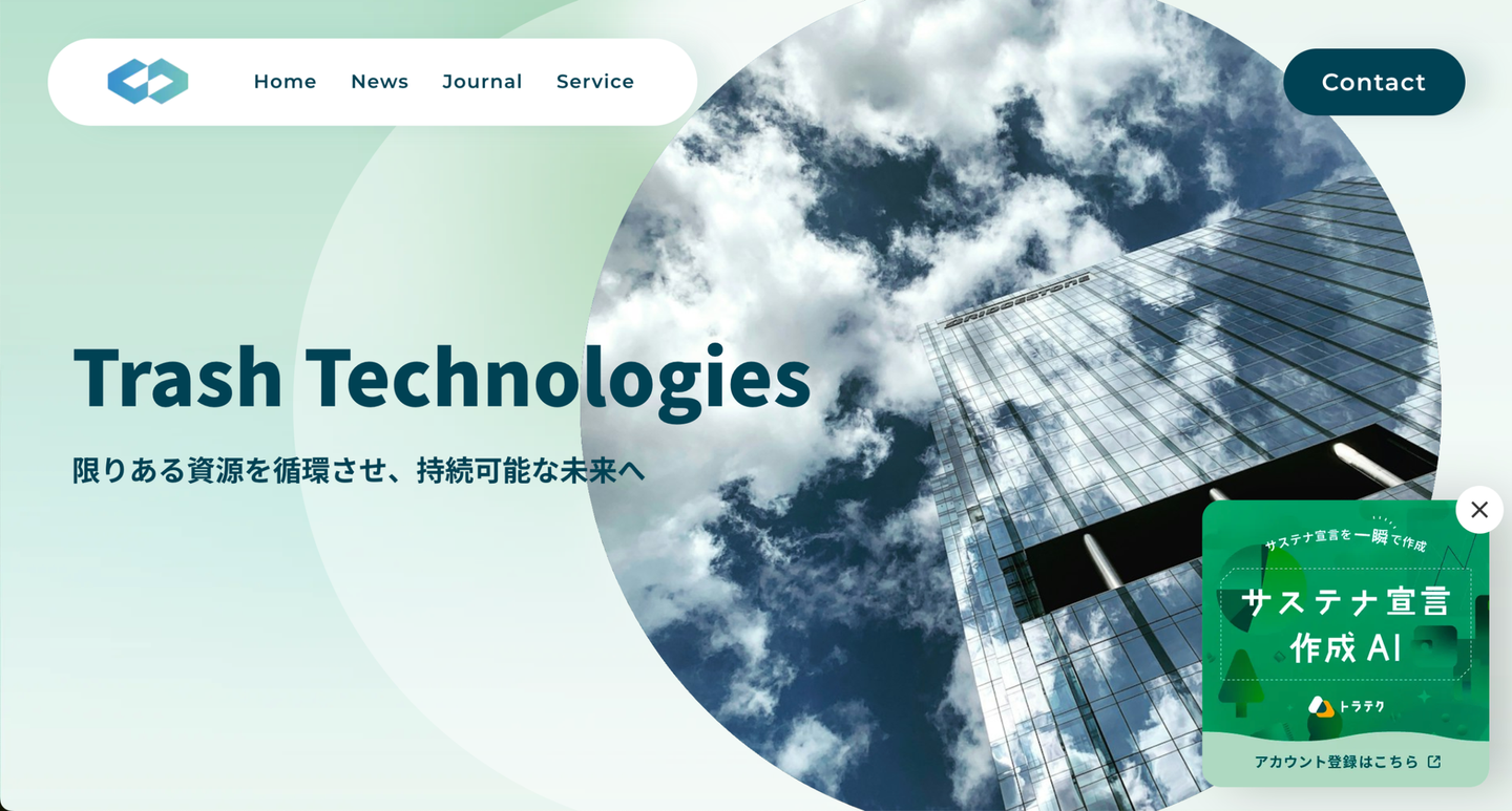 また、サービスだけでなく、訴求するためのサービスLPやTrash Technologies様のホームページに掲載するためのバナーの作成を行いました。