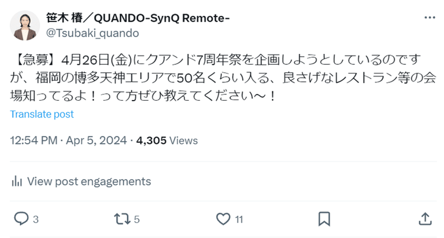 - 会場選びに苦戦。Xで改めて感じた福岡の温かさ