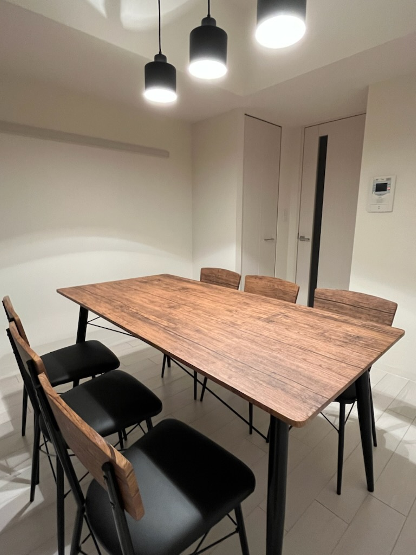 おしゃれですねー。三連ライトがおしゃです。机と椅子もおしゃれでセンスが光ってますね!
