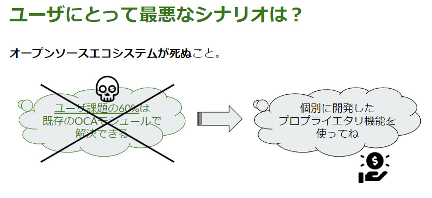 3) 「オープンソースの世界」が死ぬとユーザが不利益を被り、Odooエコシステムとして負のスパイラルに陥る