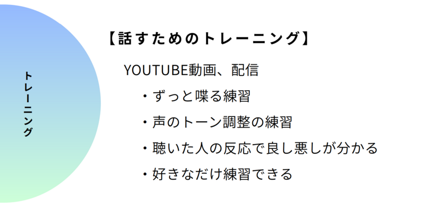 まず、話すトレーニングについてです。ご存知の方もいらっしゃるかもしれませんが、僕はYouTubeで動画投稿と配信をしています。