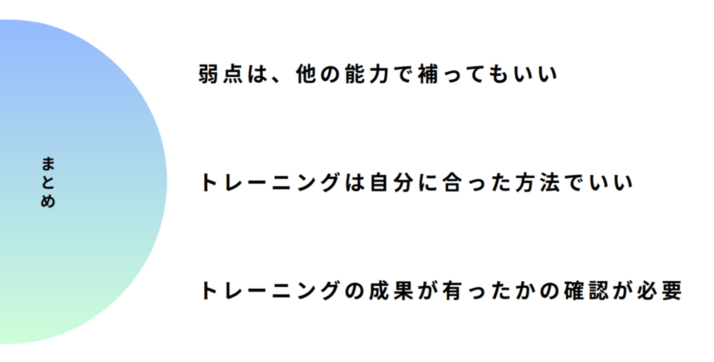 苦手な部分は得意な部分で補填して、足りない部分はトレーニング
