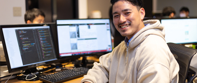 新しく入って来たメンバーも既存の社員も分け隔てなくコミュニケーションを取るのが弊社の特徴。みんな仲間みたいな感じなので、ラフに話ができます。