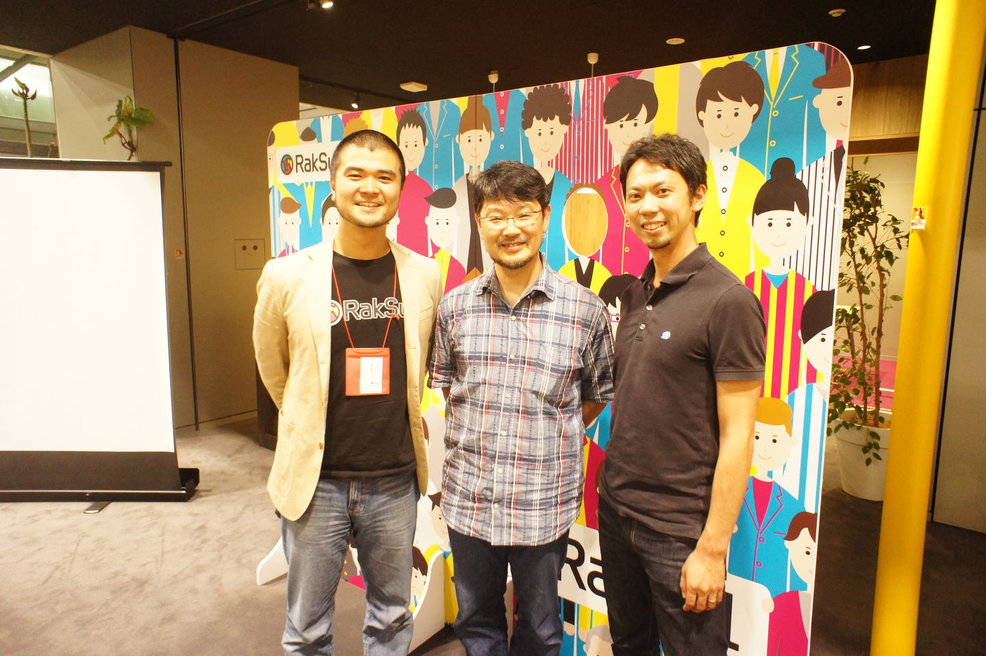 ミートアップの開演にあたり、まずは代表の松本より、ラクスルの事業内容について簡単に説明をさせていただいた後、CTOの泉からはラクスルのエンジニアが抱える現状(社内の「“まつもと”問題」を含む)についてお話をさせていただきました。ちなみに「“まつもと”問題」というのは、ラクスルでは社長に対しても「さん」づけで呼ぶため、「まつもとさん」と呼ぶと、代表の松本なのか、技術顧問のまつもとゆきひろさんなのか、はたまた経理の松本さん(すでにラクスル社内にはふたりの「まつもとさん」がいます)なのかがわからなくなると言うもので、ラクスルは、まつもとゆきひろさんを敬意をこめて「まつもと先生」と呼ばせていただく合意をいただいております。