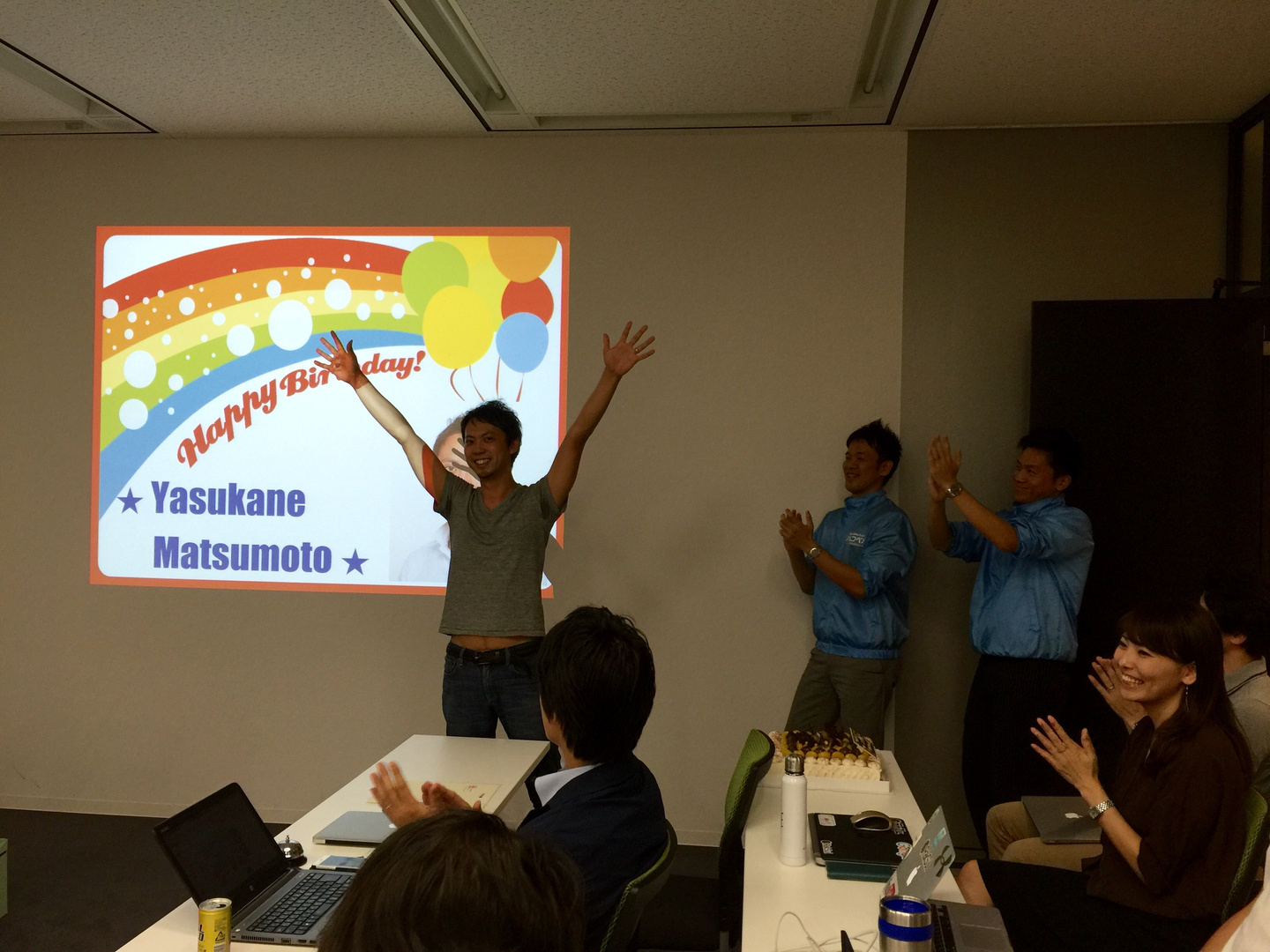 ▲社内ハコベルのみなさんがケーキをお届けしてくれました