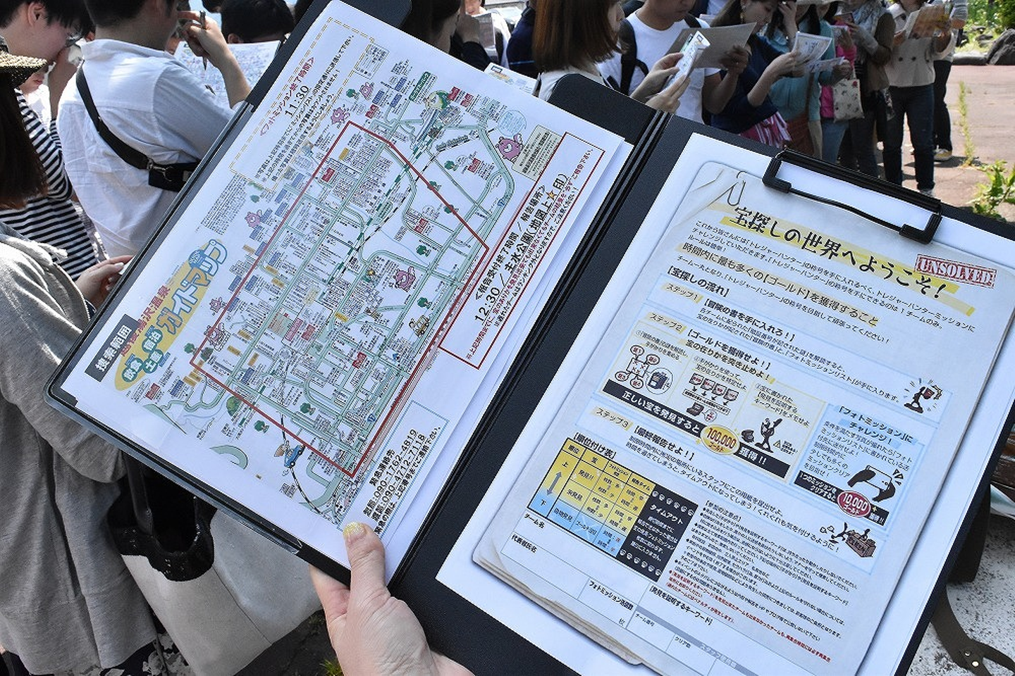 事前情報では雨予報もちらついていたお天気も、心配をよそに快晴!!気温27℃と夏日の中、チームの知力と体力をフル稼働して1位を目指します。謎解きが得意な人、体力には自身がある人、とにかく動き出す人、じっくり考え込む人・・・メンバーの個性や特性をいかしつつ、どういう作戦で勝ちにいくかはチームしだい。