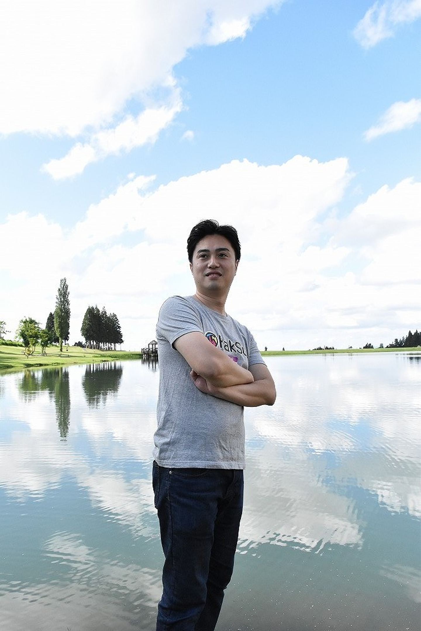 ▲CFOたっての希望により「湖に浮かぶ、CFO」の図 バッチリきまってます!