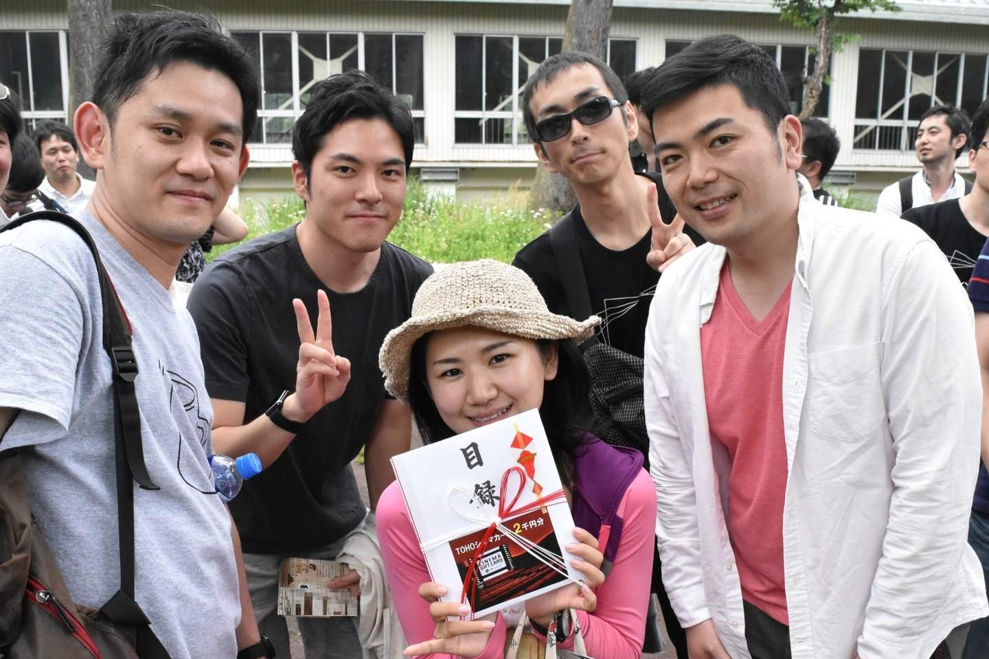 そして約2時間後、汗だくになりながら越後湯沢の町を歩き回った12チーム全員がゴールし、いよいよお待ちかねの結果発表!!今回は12チーム中、1位~5位のチームに総額約10万円の豪華賞品が授与されました!(実は1位より2位の方が喜ばれたという話も・・・)
