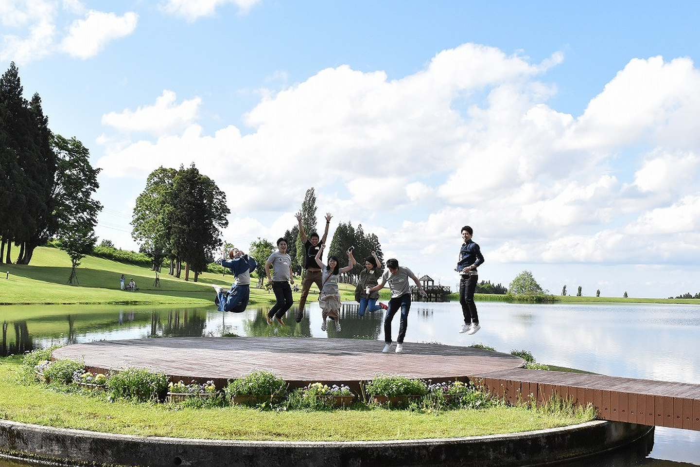 およそ2時間半にわたる議論&発表を終え、研修パート第1部が終了。研修会場の外は大自然が悠然と広がり、とっても開放的・・・大空の下、しばし休憩!
