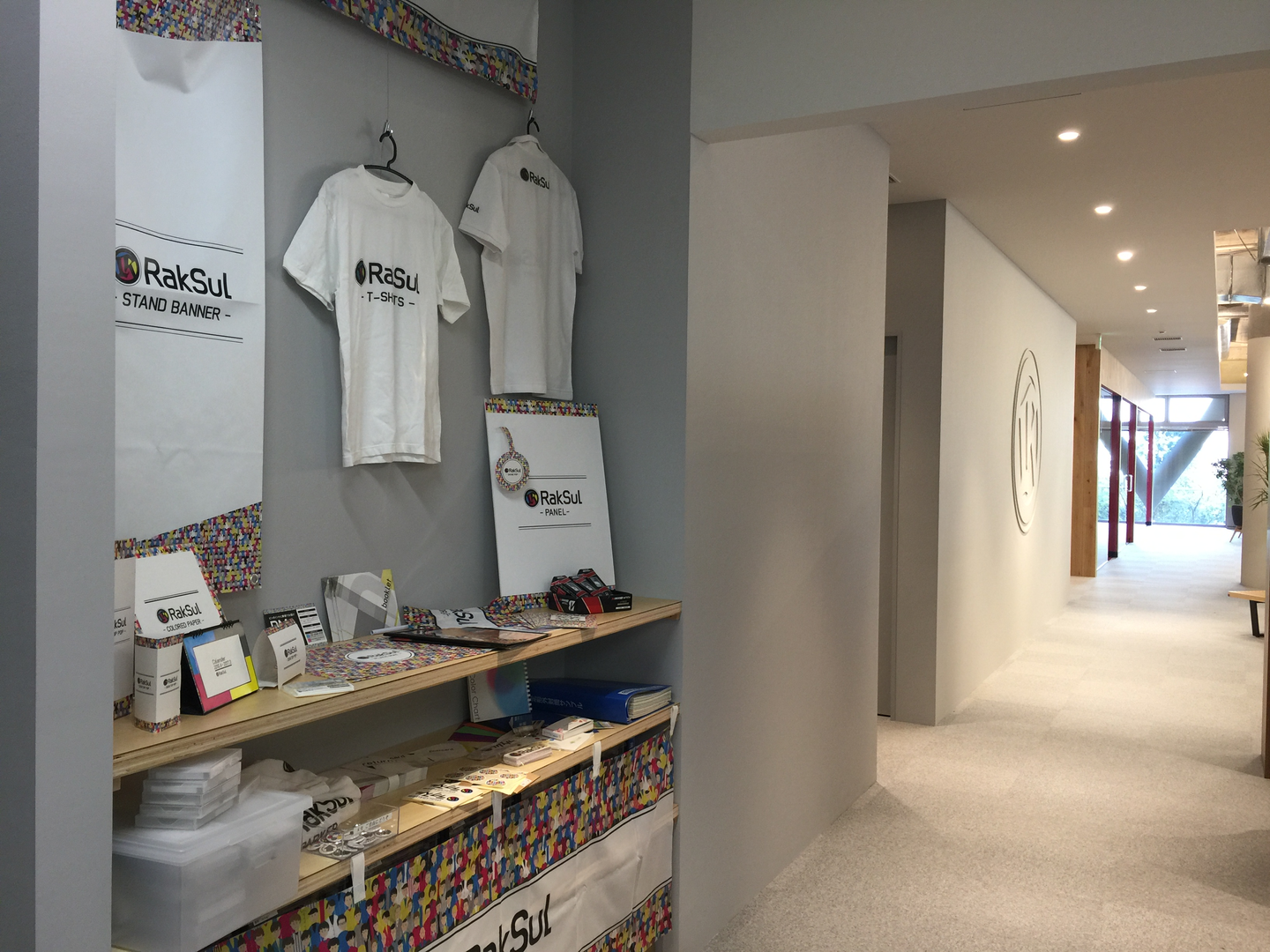 ▲おまけ:会議室の並びには、新たなロゴスペース(撮影スポット)とサンプル棚も完備!