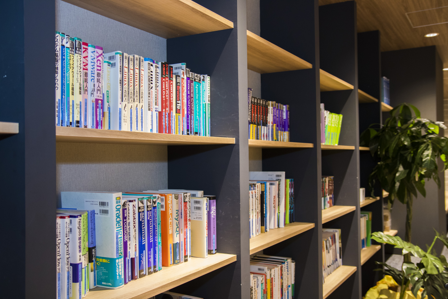 こちらが本棚です。社員はこの本棚にある技術書を借りることも出来ます!また、当社では技術書の書籍購入補助も福利厚生として行っています^^