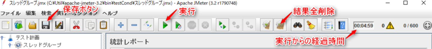 より正確な結果が求められるテストを行う場合は、GUIモードでテスト計画を作成、上部メニューの保存ボタンから保存したのち、 Non-GUIモードから読み込んでお使いください。
