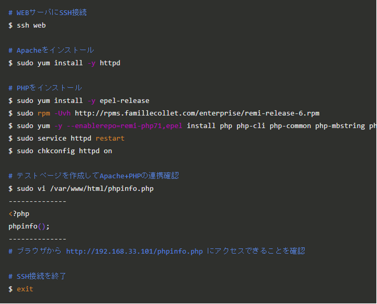 - WEBサーバの構築 (Apache2.2 + PHP7.1)