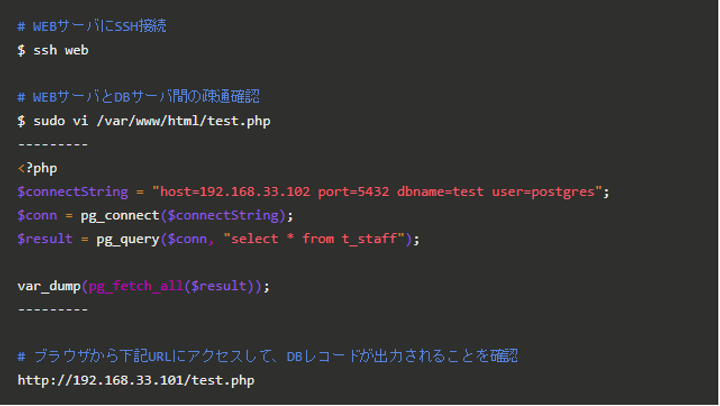 - WEB/DBサーバの連携チェック