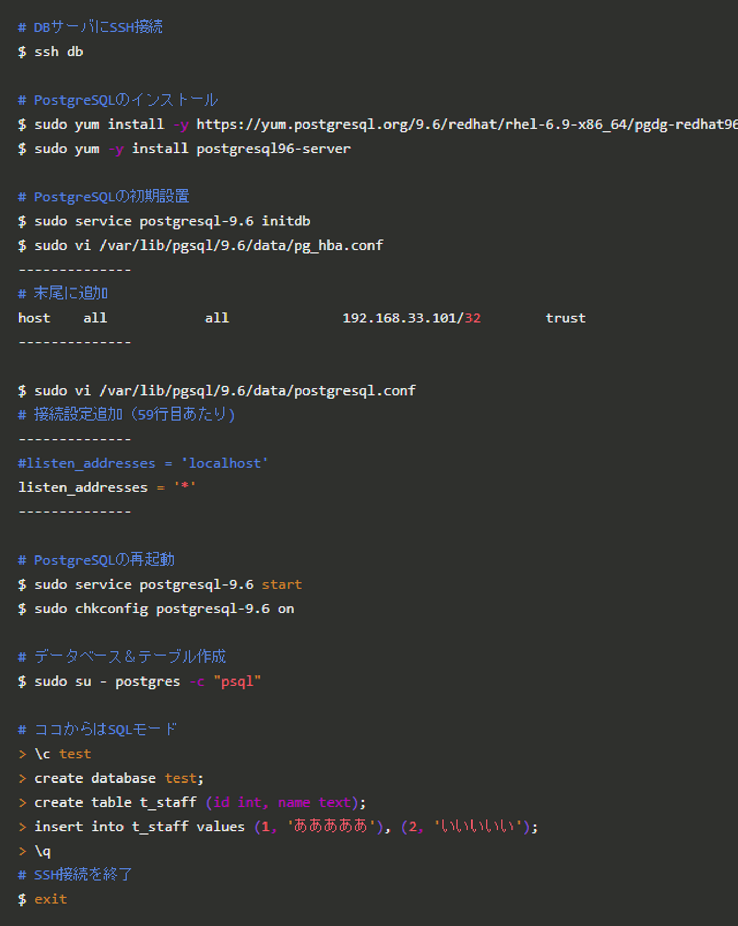 - DBサーバの構築(PostgreSQL9.6)